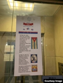 Cubanos colocan carteles en la sede de la misión permanente de Cuba ante ONU en Nueva York